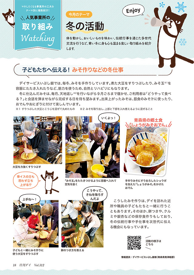 体を動かし、おいしいものを味わい、伝統行事を通じた多世代交流を行うなど、寒い冬に身も心も温まる楽しい取り組みを紹介します。