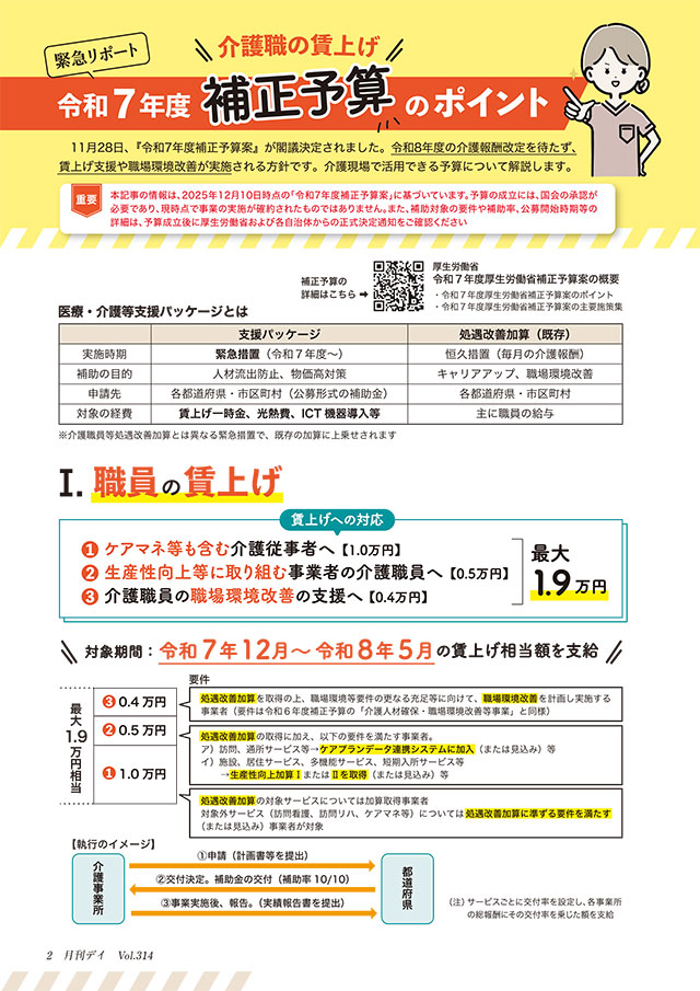 令和8年度の介護報酬改定を待たず、『令和7年度補正予算案』が閣議決定されました。介護職の「賃上げ」や職場環境改善のための支援など、介護現場で活用できる補正予算について解説します。