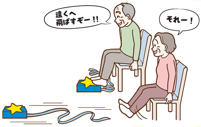 タオルを両手で引っ張り「アジサイ」を飛ばす距離を競います。4種のレクを、より体を動かすアレンジ付きでご紹介!
