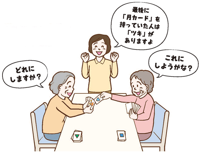 「干し柿」を麻ひもに結ぶ早さを競います。深まる秋におすすめの頭も体もしっかりと使うレクを6種紹介。